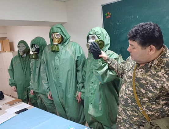 “Әлеуметтік-гуманитарлық бағыт” ЦК онкүндігі аясында 04.03.2025 жылы сағат 12: 00-де АӘД оқытушысы Д.М. Досов ПР-1-24 тобында “Жеке қорғаныс құралдары”тақырыбында ашық сабақ өткізді. Бұл сабақта студенттер газ маскасын, респираторды қолдануды үйренді, қорғаныс құралдарымен танысты, сонымен қатар қарапайым қорғаныс құралдарын жасауды және қолдануды үйренді. Бұл сабақ студенттердің назарын, өзара көмек дағдыларын, жылдамдық пен ептілікті қалыптастырды. Сабақтың осы түрін қолдану ақпаратты кеңейтуге, оқыту аспектісін өзгертуге, түсінуді тереңдетуге, тәжірибе мен өзара әрекеттесу арқылы ұғымдарды нақтылауға мүмкіндік берді. Студенттерде жалпыәскери жарғылар саласында қажетті білім, білік және дағдылар орнықты.